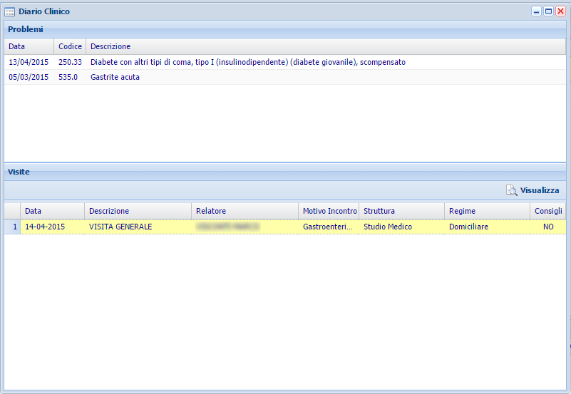 Visualizza tutti i problemi precedentemente creati nella sezione dedicata del diario prescrittivo e le visite effettuate.